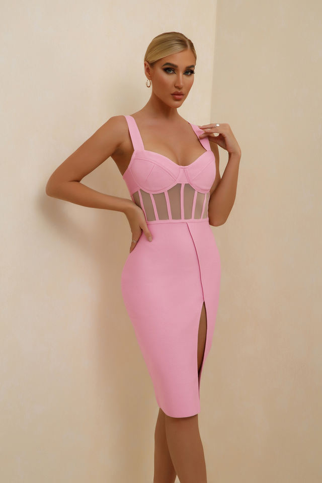 pink Dress Strappy Sleeveless Striped Midi Bandaged 2021 Summer Clothes for Women Wrap Bandaged Dress