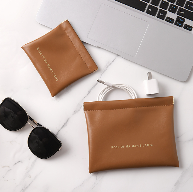 Sac de rangement de fragments de couleur rose avec fermeture automatique sac de rangement pour écouteurs filaires PU zéro portefeuille Mini sac de maquillage rouge Portable