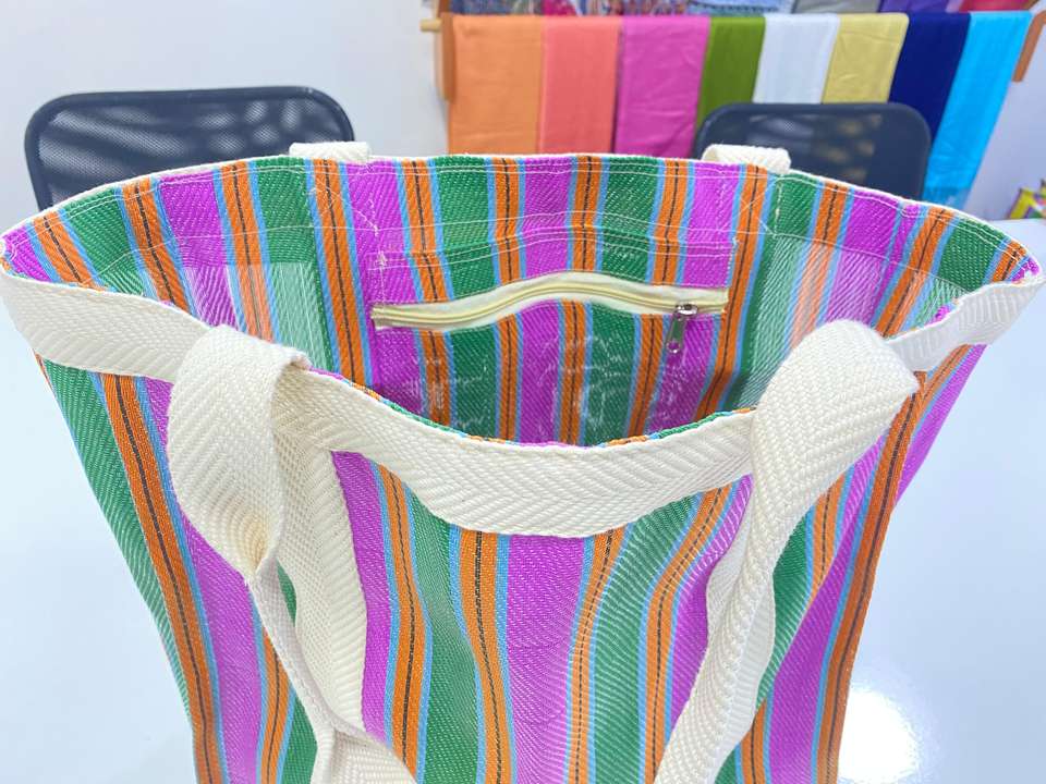 Sac à provisions en nylon écologique et réutilisable RPET avec fermeture éclair sacs de plage en plastique recyclé tissé à la main rayé fabriqués en Inde