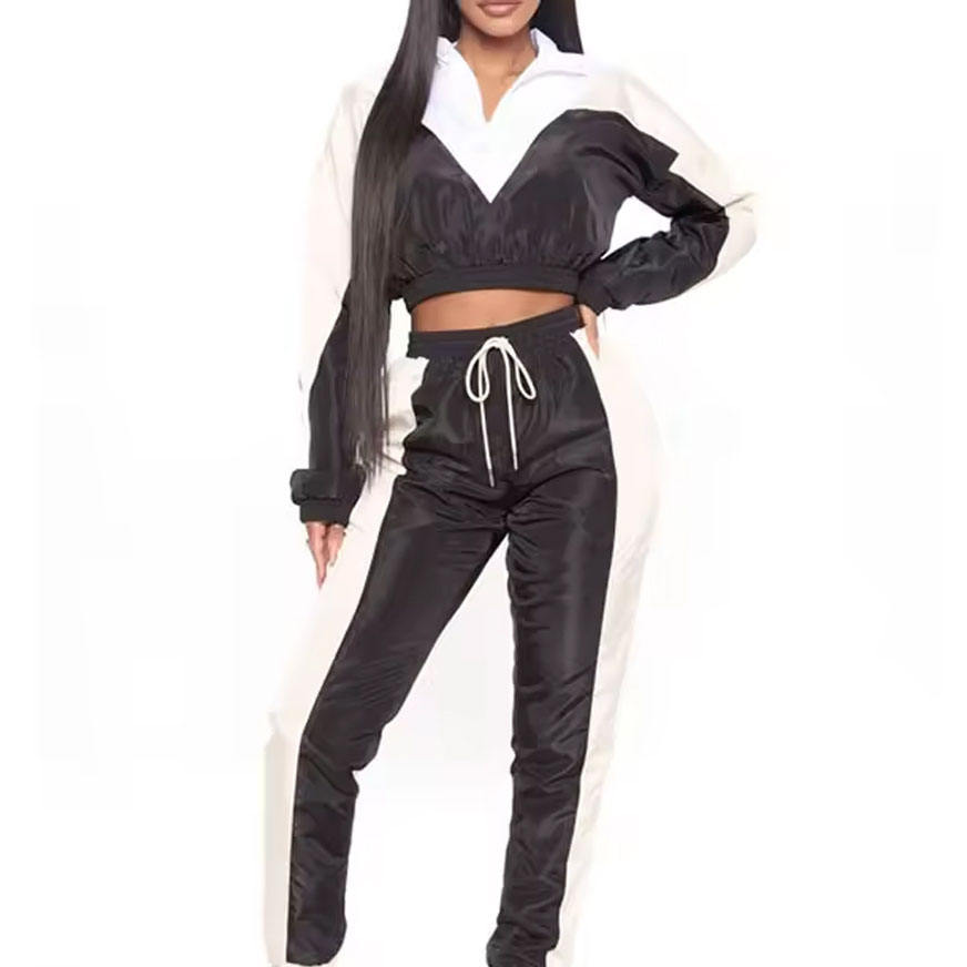 Grande taille 2025 solide motif personnalisé mode coupe-vent ensemble femmes couleur bloc pull recadrée veste ensemble