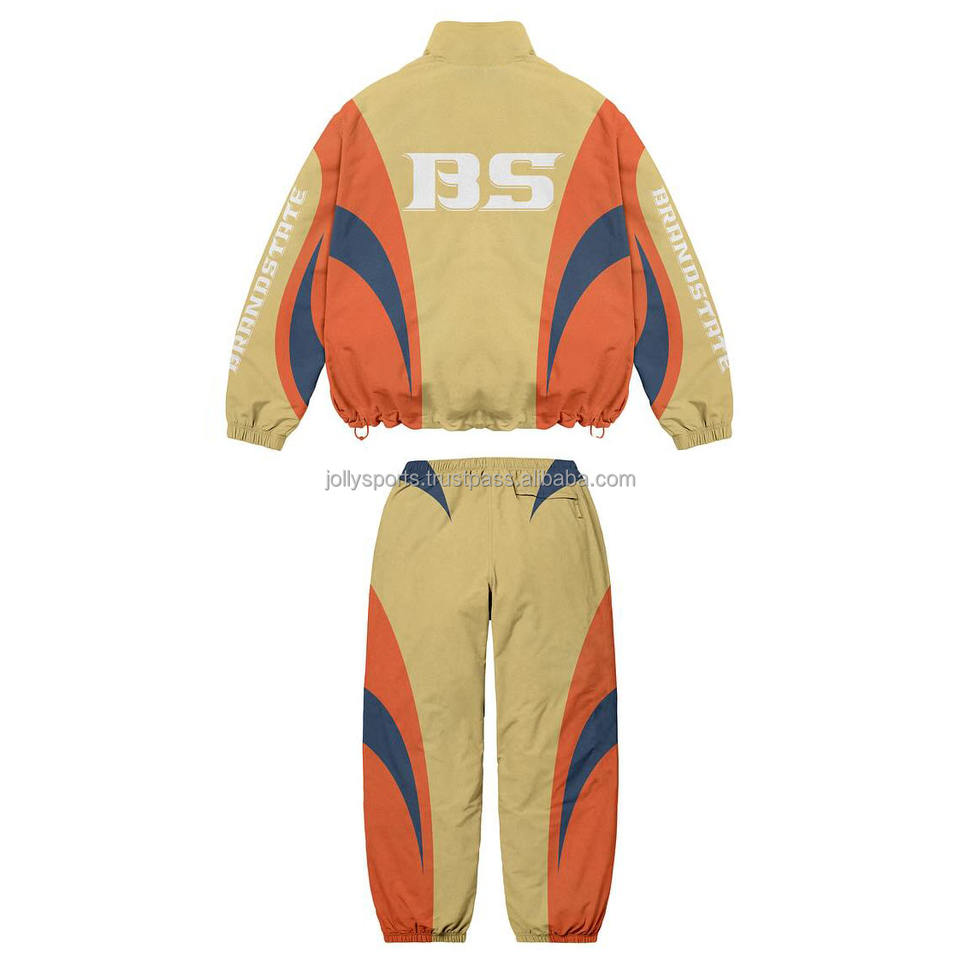 Ensemble deux pièces personnalisé de grande taille coupe-vent veste courte Patchwork Zip up Nylon Polyester Streetwear Survêtement Hommes