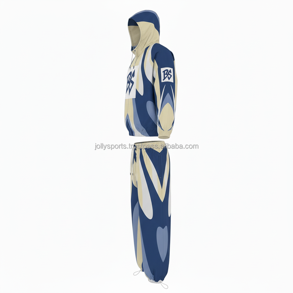 Ensemble coupe-vent en nylon polyester 130GSM de qualité supérieure grande taille Ensemble coupe-vent deux tons bleu beige design personnalisé avec logo Ensemble coupe-vent à transfert thermique