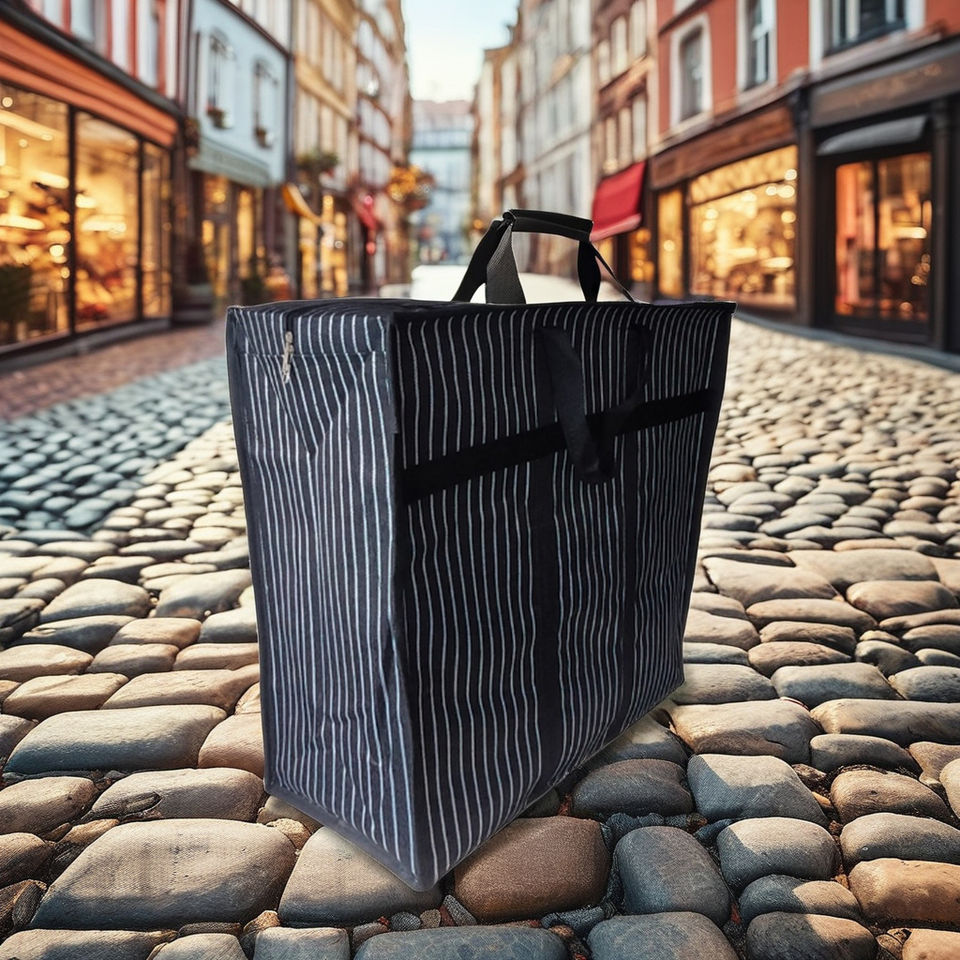 Eco-friendly PP Woven Shopping Bags Recycled Polypropylene Striped Pattern Reusable Supermarket Use Customized Color Design Made