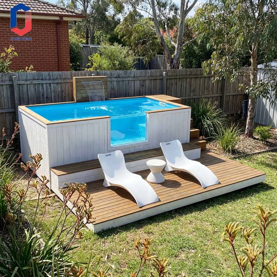 Piscine rectangulaire hors sol en fibre de verre pour la maison, le jardin, les enfants, avec éclairage LED, résistante aux UV et écologique