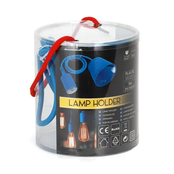 Portalmparas E27 en plastique, câble 2 x 0,75 mm, longueur 1 m, couleur bleue, idéal pour l'éclairage domestique et les projets