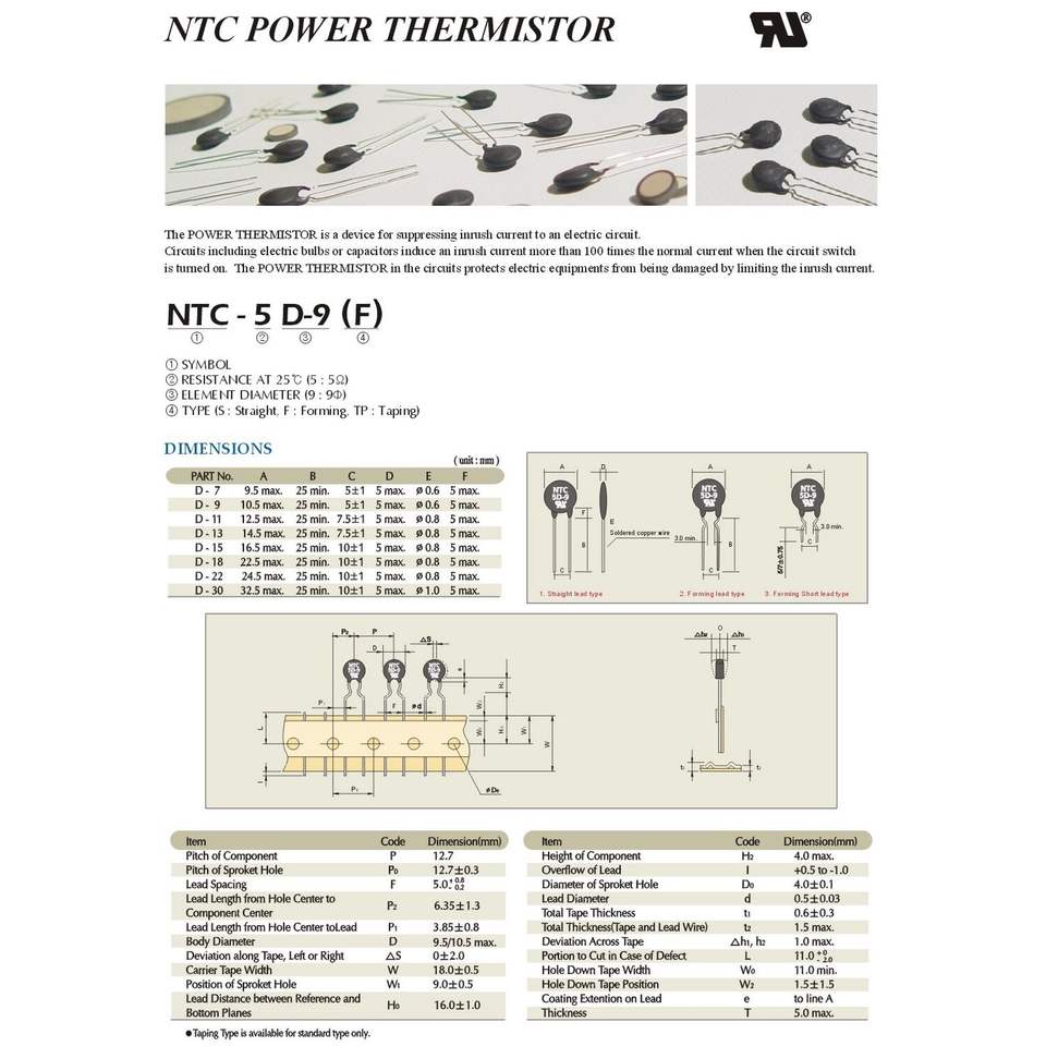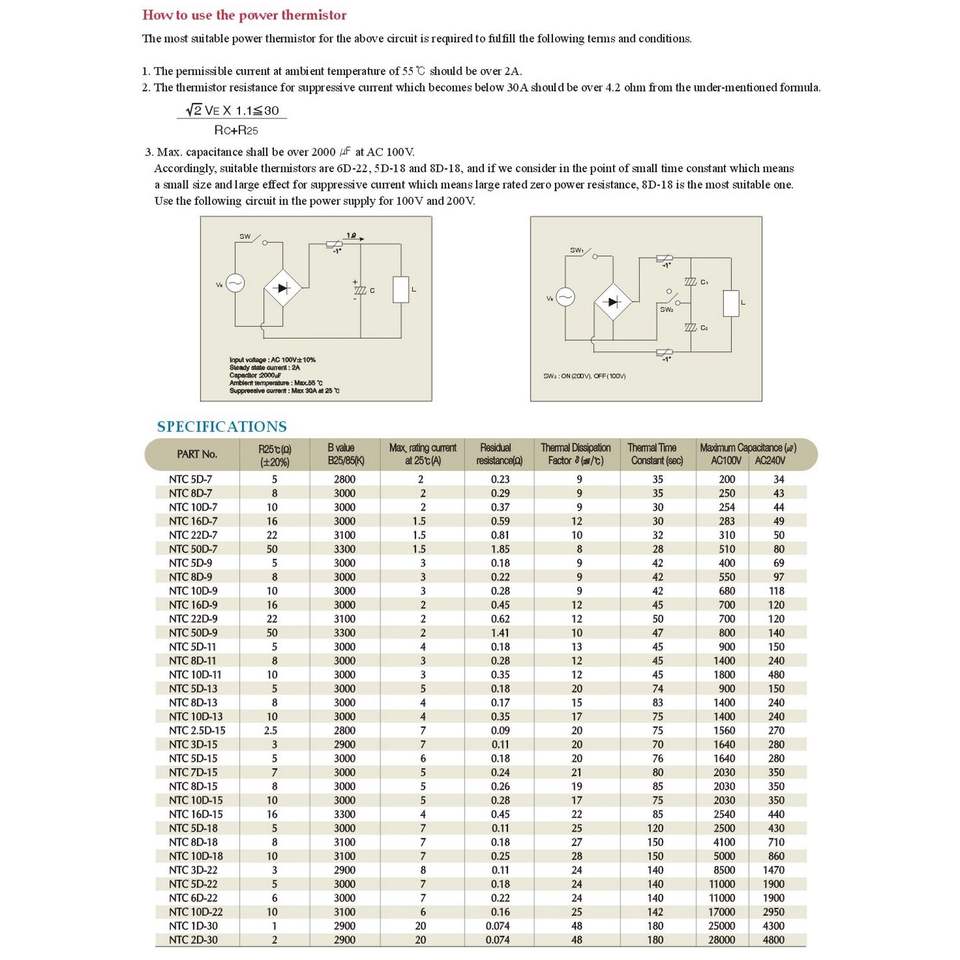Thermistance statique, type d'alimentation NTC
