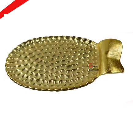 premium quality golden finished metal aluminum leaf shape metal serving platter for hotel restaurant and bar
