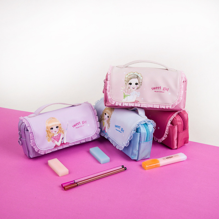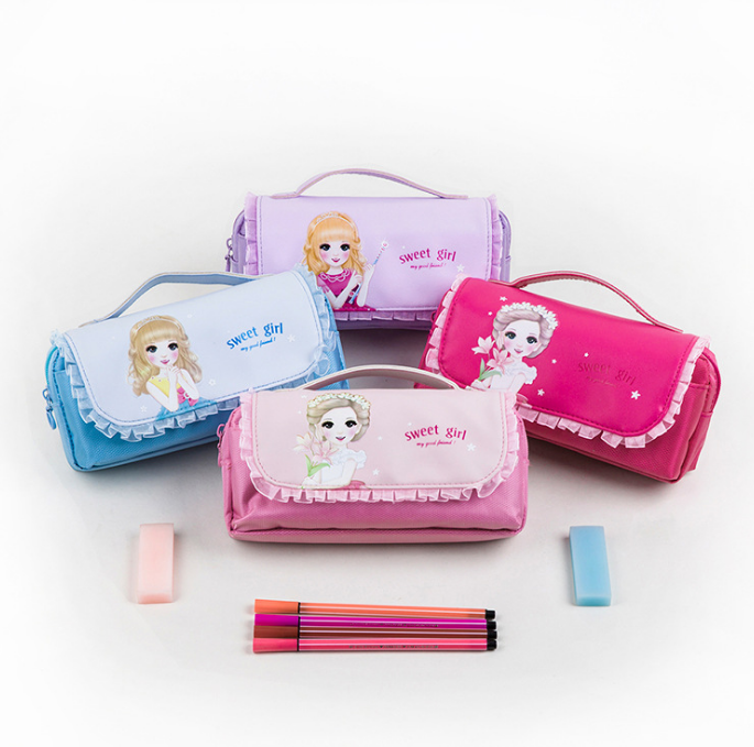 Princess Printing Cute Kids Fabric School Pencil Storage Case with Stationery Custom Design Shijur Junde066
