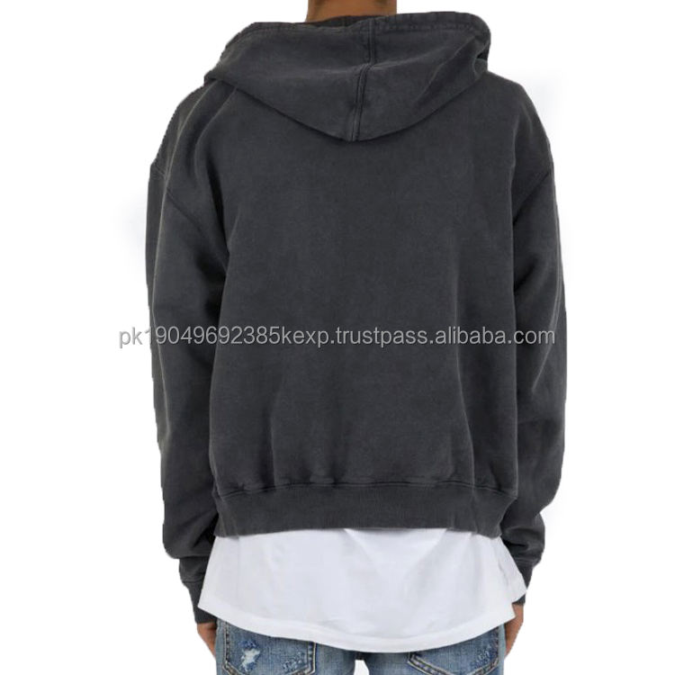Qualité français éponge épais coton lourd blanc 400g hommes lavage à l'acide surdimensionné vintage à capuche Double fermeture éclair lavage à l'acide à capuche hommes