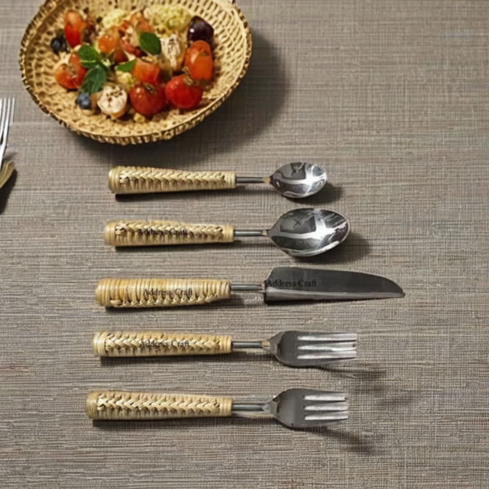 Ensemble de couverts de luxe écologiques en acier inoxydable avec manches artisanales durables pour les fêtes et la table