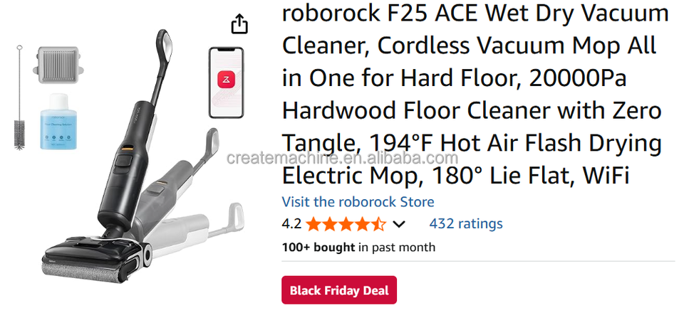 Aspirateur-balai sans fil Roborock F25 ACE Combo 5 en 1, aspirateur-balai sec et humide, serpillière intelligente pour sols durs