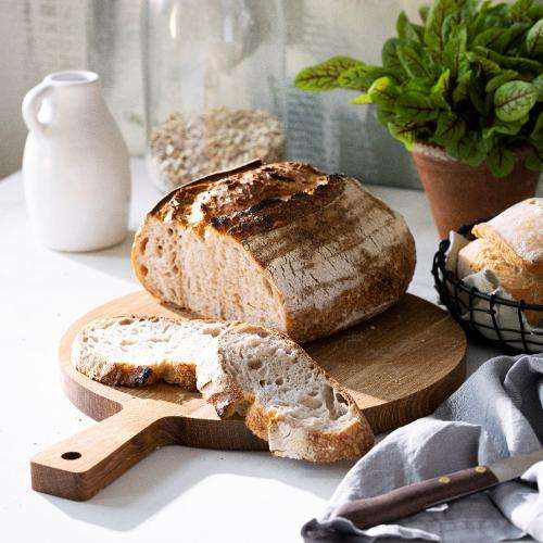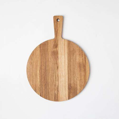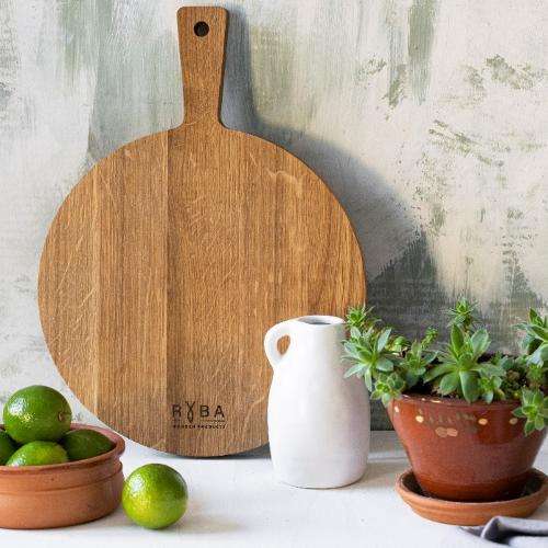 round Oak Cutting Board with Handle Customizable Logo End Grain Style Made of Olive Wood Size 395x290x20mm