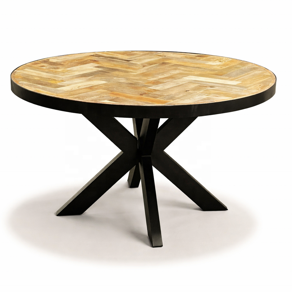 Table à manger en bois de manguier massif faite à la main | Meubles de salle à manger de style loft industriel moderne | Marque Akku Arts | Plusieurs tailles et couleurs