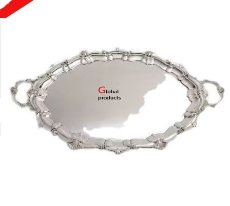 royal look silver finished metal stainless steel serving tray for hotel restaurant and bar