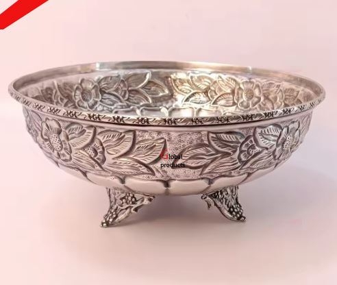 royal look silver finished metal stainless steal serving bowl for hotel restaurant and bar