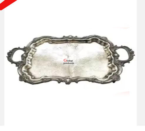 royal look silver finished metal stainless steel designer serving tray for hotel restaurant and bar