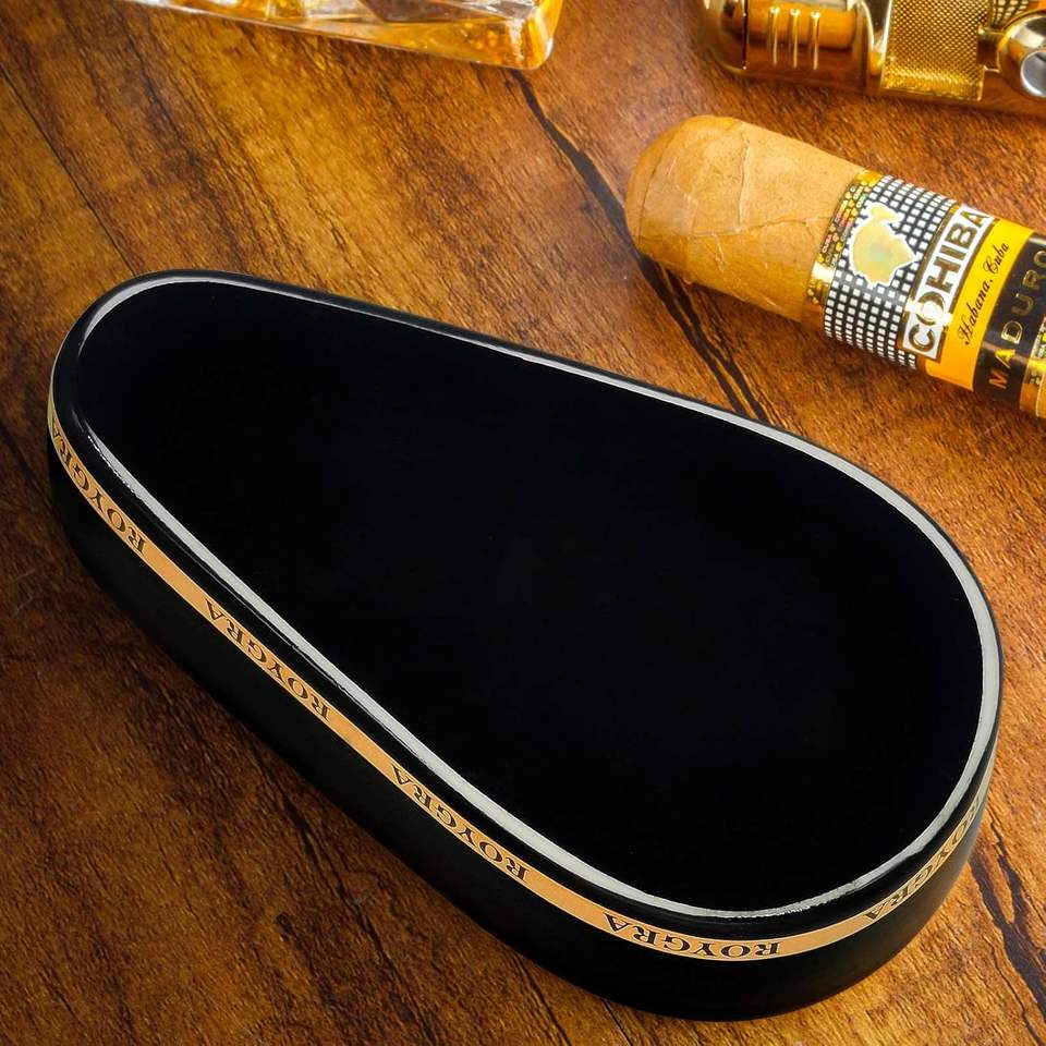 Cendrier à cigares roygra, cendrier à cigares en céramique dorée fait à la main, accessoires pour cigares d'extérieur (noir)