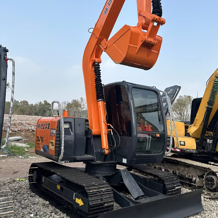 Excavatrice Hitachi d'occasion de 7 tonnes, modèle ZX70, provenance Japon, équipement de construction avec certification EPA.