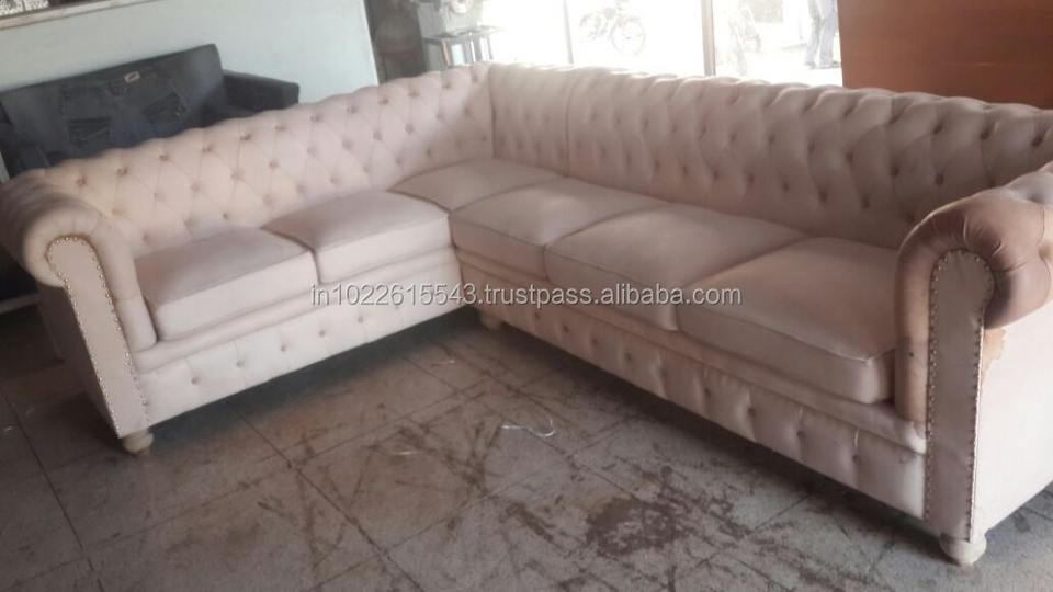 Canapé Chesterfield sectionnel en cuir véritable