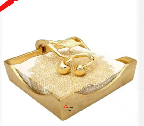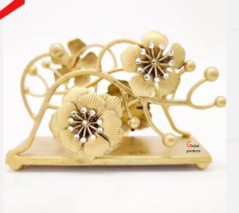 shiny golden finished metal stainless steel napkin stand with beautiful golden flower for hotel restaurant and bar