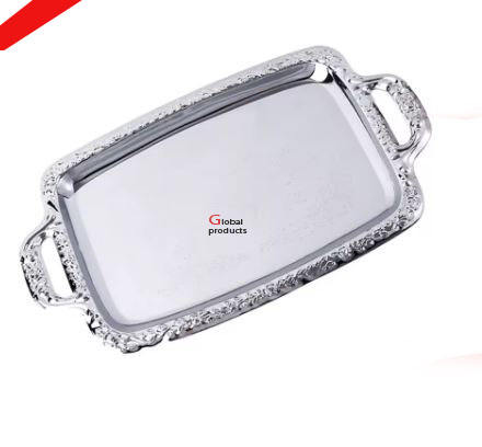 shiny silver finished metal stainless steel oval shape serving tray for hotel restaurant and bar