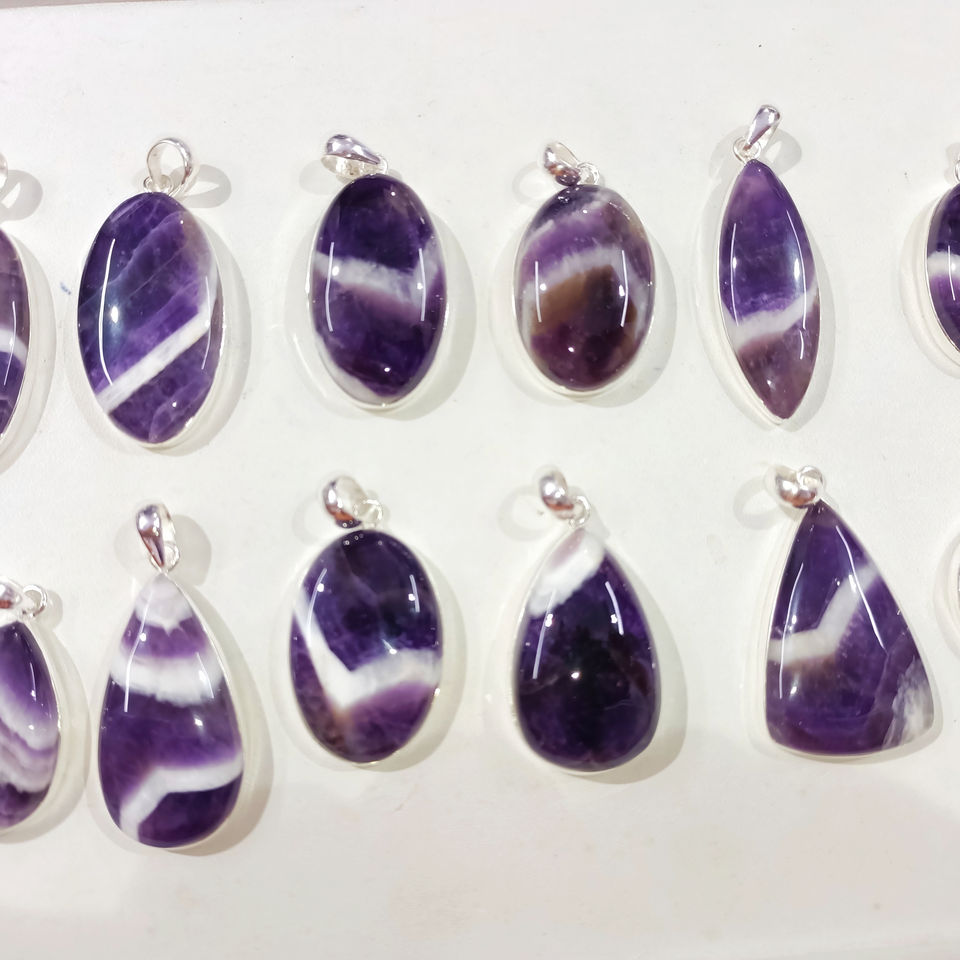 Pendentif en argent 925 sterling Améthyste lettres cursives pendentifs Améthyste Dentelle buddah oeil d'horus pendentif tranche charme