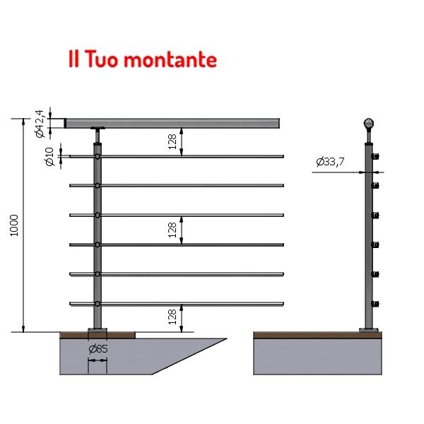 Sku P110103-6 VERT ROND Ø 33.7 POUR 6 SATIN AISI 304 EN ACIER INOXYDABLE FIXATION AU SOL HAUTEUR 1.00 m