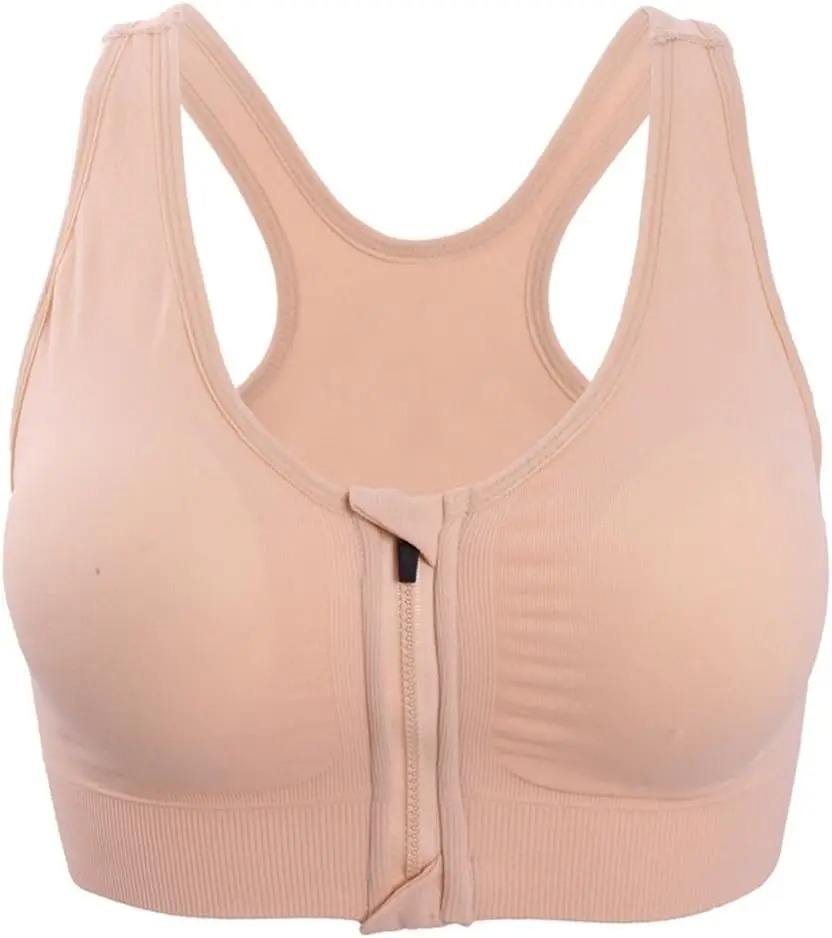 Women's Sports Bra Crop Top Fitness Zipper Underwear Breathable Crop Top Simple Style Shockproof Bras for Running Push 5XL
