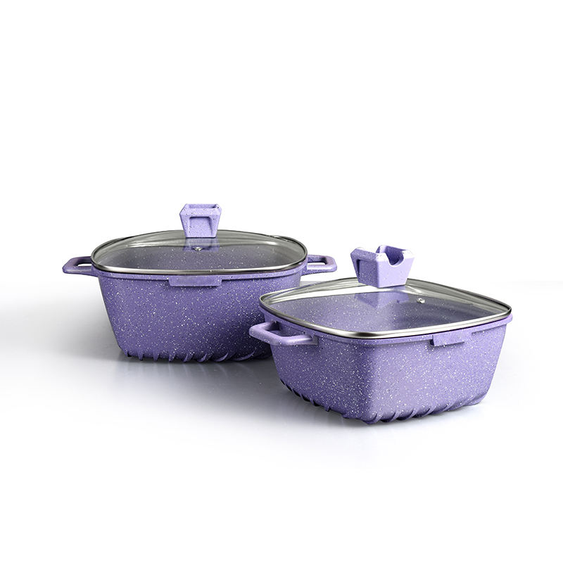 Cuisine professionnelle carrée en aluminium grande cuisine pas cher rose camping revêtement céramique antiadhésif ensemble de casseroles en granit avec logo