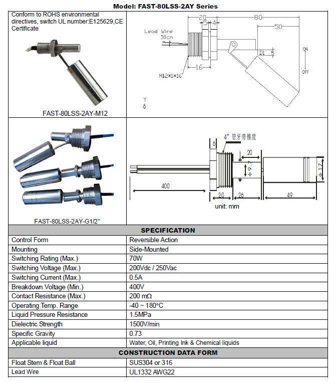 Contrôleur de niveau d'eau électrique en acier inoxydable interrupteur à flotteur capteur de niveau de liquide monté sur le côté pour système d'alarme