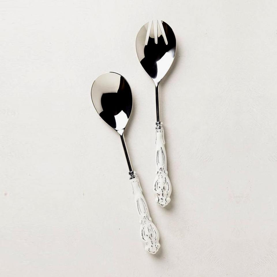 Service à salade en acier inoxydable avec poignée unique en marbre blanc, ensemble de vaisselle royal