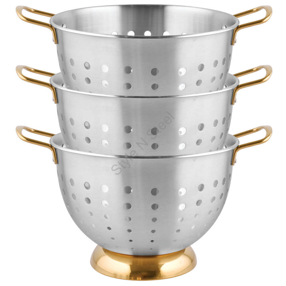 Name:steel wholesale premium city colander with a gold handle 3-piece set