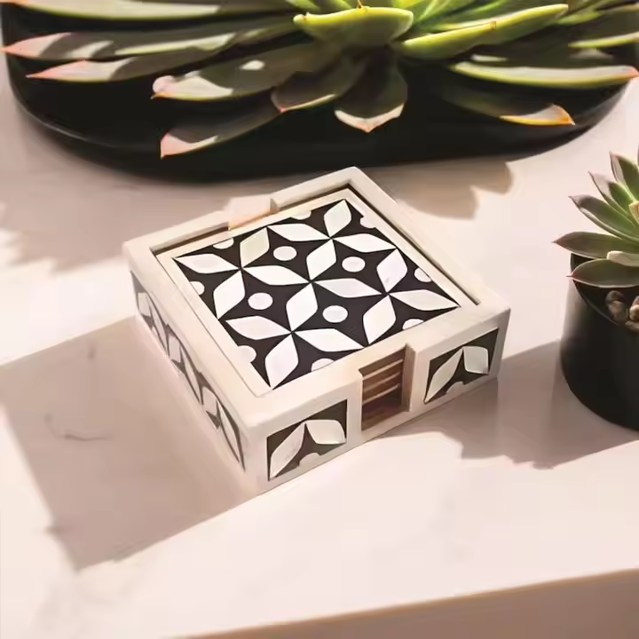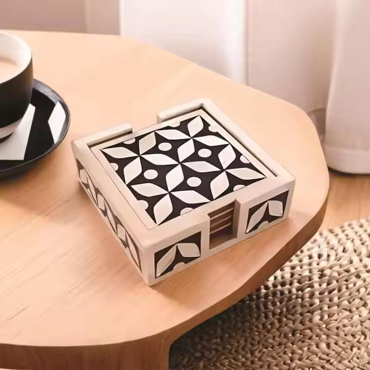 Dessous de verre en pierre Ensemble de 4 sous-verres en bois pour le thé et le café par l'artisanat du croissant
