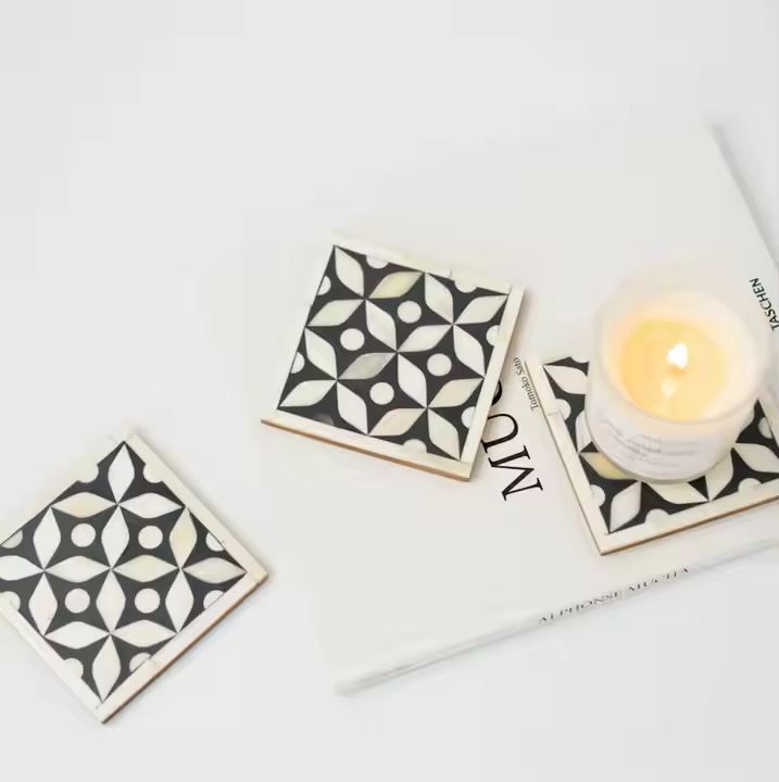 Dessous de verre en pierre Dessous de verre incrustés d'os uniques Nouveau plateau incrusté d'os de dernière conception avec dessous de verre par l'artisanat en croissant