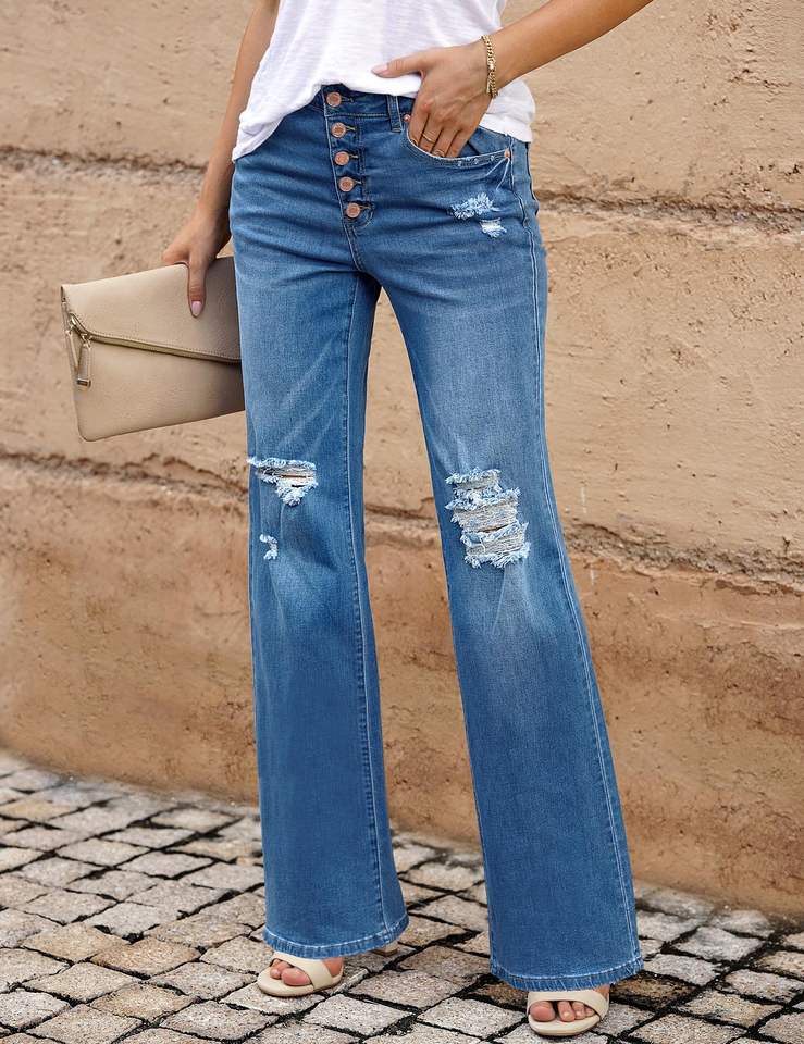 Pantalon en denim droit décontracté respirant à haute élasticité dans la collection Streetwear de style Hip Hop jean grande taille taille moyenne