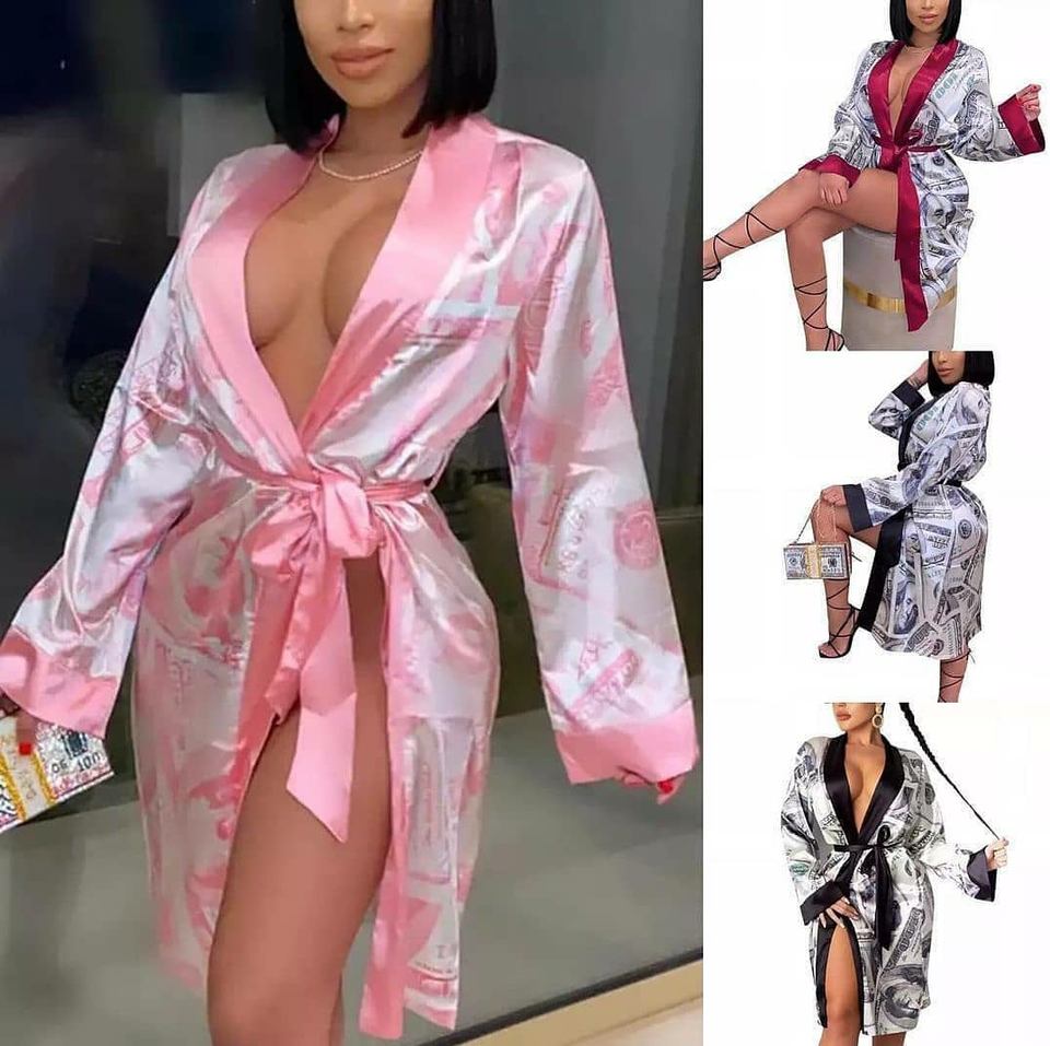 summer nightwear short sleeve sleepwear Pajamas Big Sleepwear Summer Cool Smooth Soft Ice Silk Bathrobe Tie up Morning Homewear
