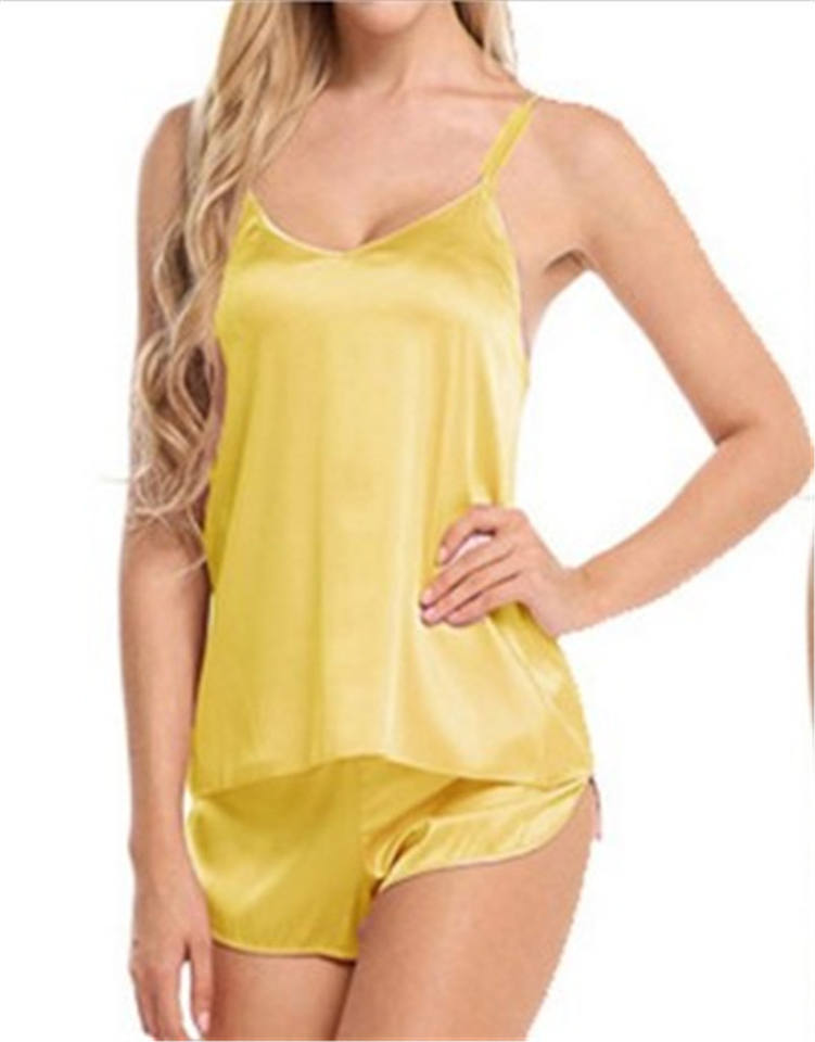 summer nightwear short sleeve sleepwear Silk Satin Women Sleepwear Two Piece Sets Nightgown Pajamas