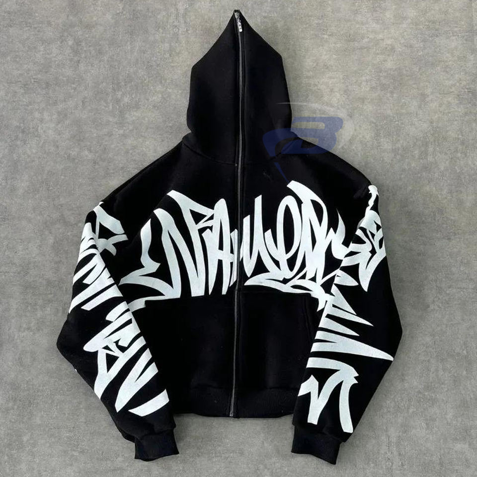 Sweat à capuche Street Style Zip Up Graphic Hoodie Urban Streetwear dernière mode imprimé sweat à capuche y2k hoodie