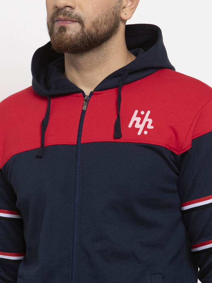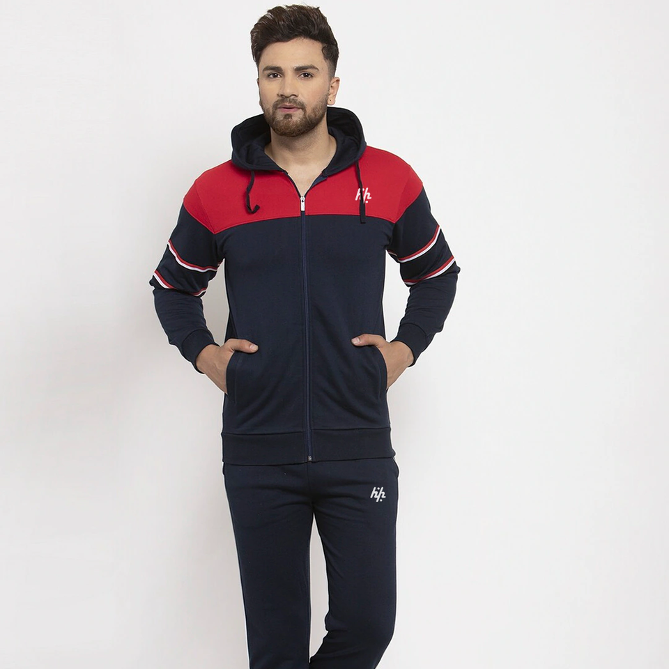 Huzaifa Products Survêtement en polaire d'hiver pour hommes, bleu marine et rouge, couleur bloquée, logo personnalisé, grande taille, fabriqué au Pakistan