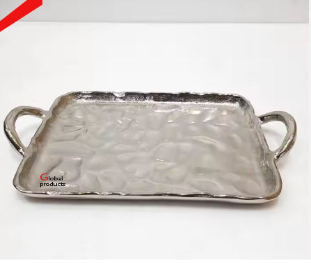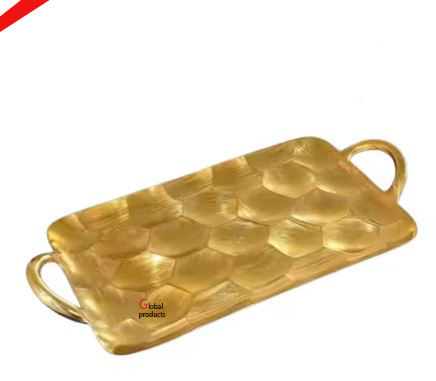 trending look golden finished metal aluminum tea coffee serving tray for hotel restaurant and bar