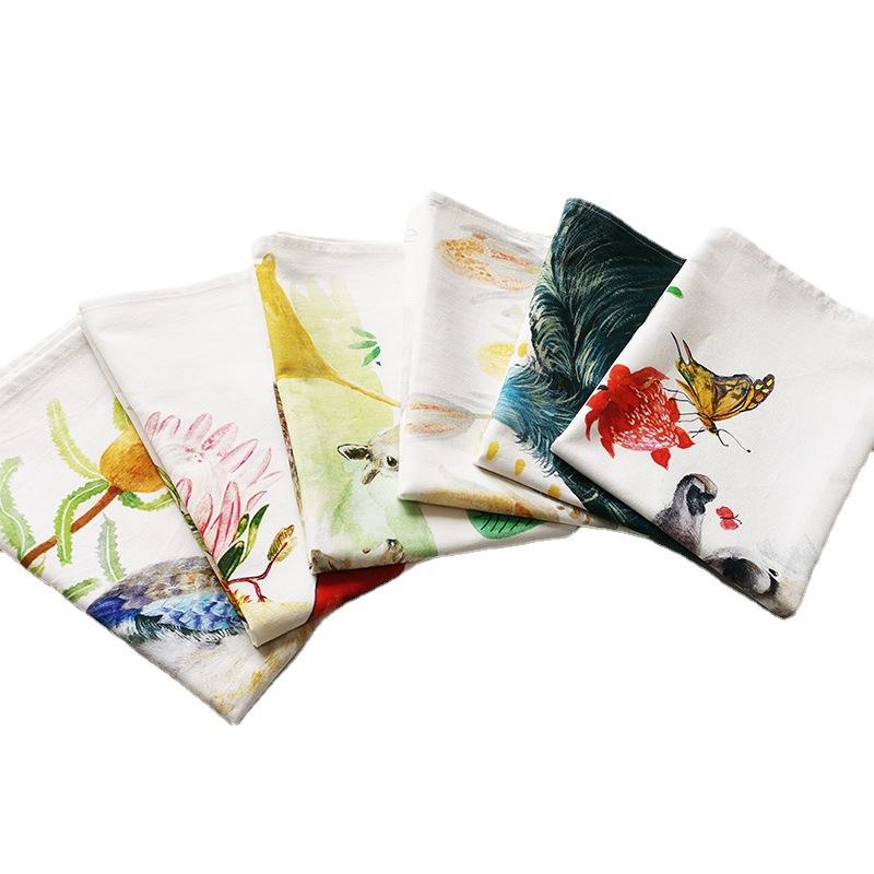 Serviettes de thé brodées lavande, multicolores, 50x70, avec motif bleu, réutilisables, pour table, à bas prix, vente en gros, faible MOQ, impression personnalisée