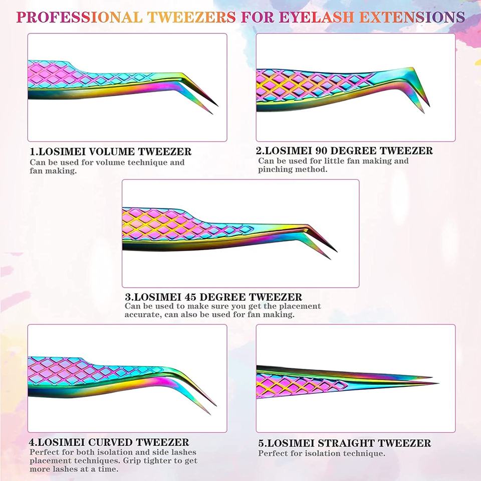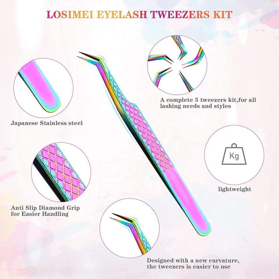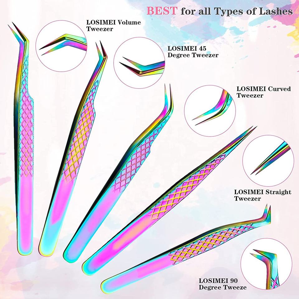 Pince à cils en acier inoxydable de qualité supérieure en forme de botte avec pointe en fibre Plasma Rainbow Color Coated Custom Manufacturing