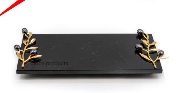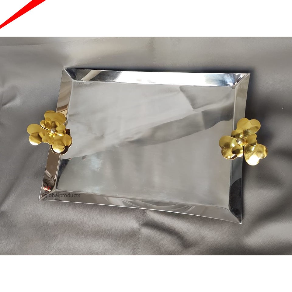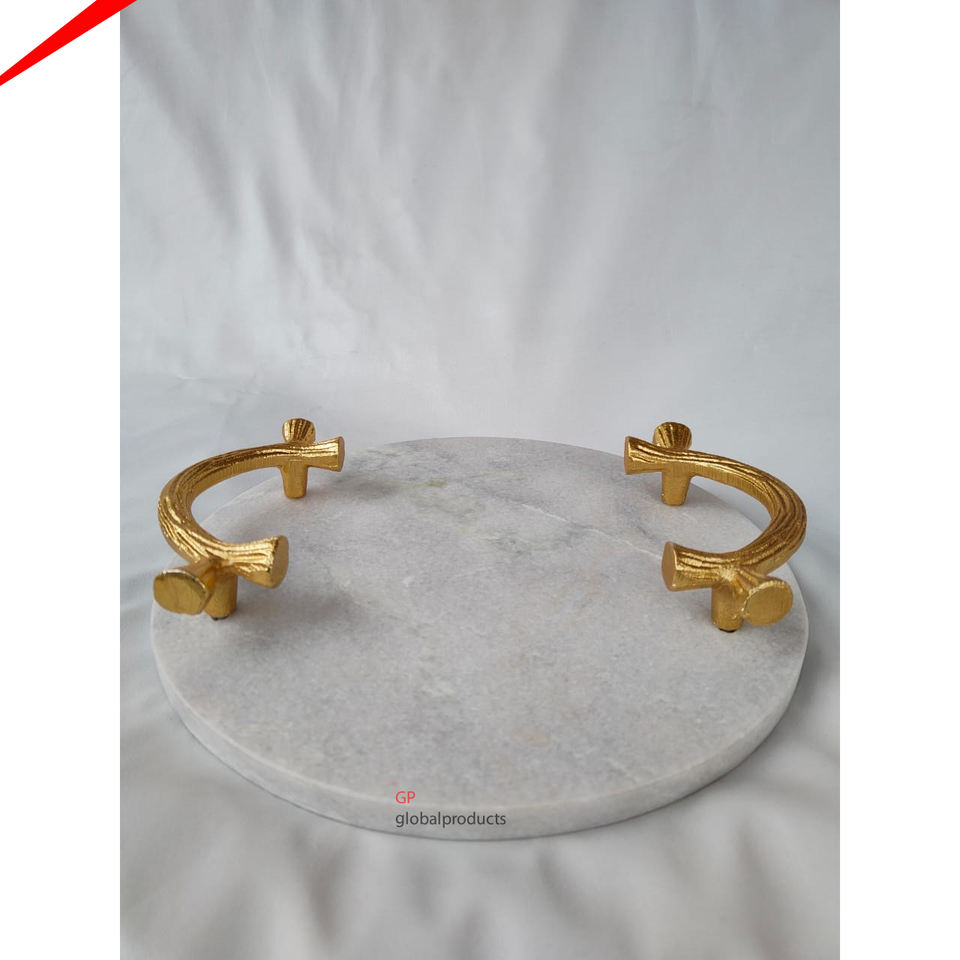 Plateau de service rond en métal pur de qualité supérieure, à poignées dorées décoratives, pour décor du ramadan, livraison gratuite
