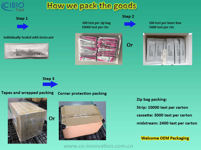 Nom du produit:Test de grossesse HCG en une étape, à uriner directement.