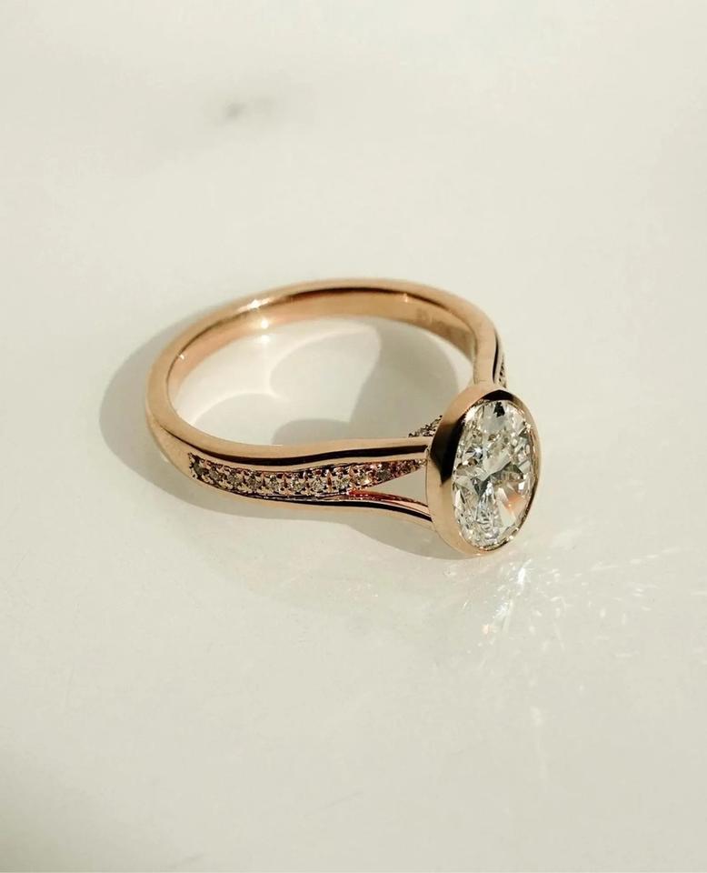 Bague de fiançailles unique en or jaune 14 carats avec moissanite ovale sertie en pavé, pour mariage ou cadeau d'anniversaire