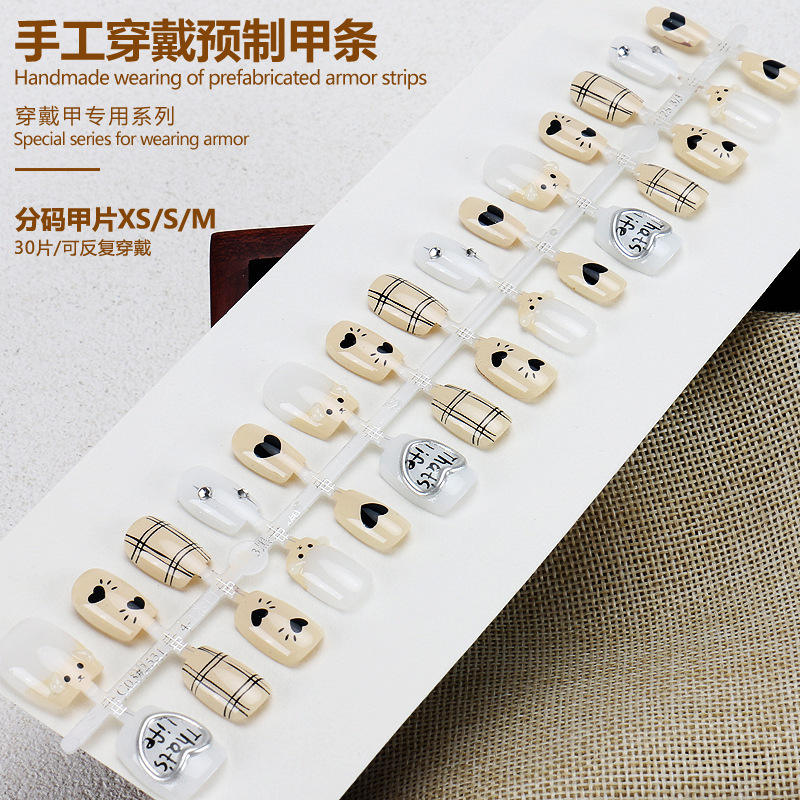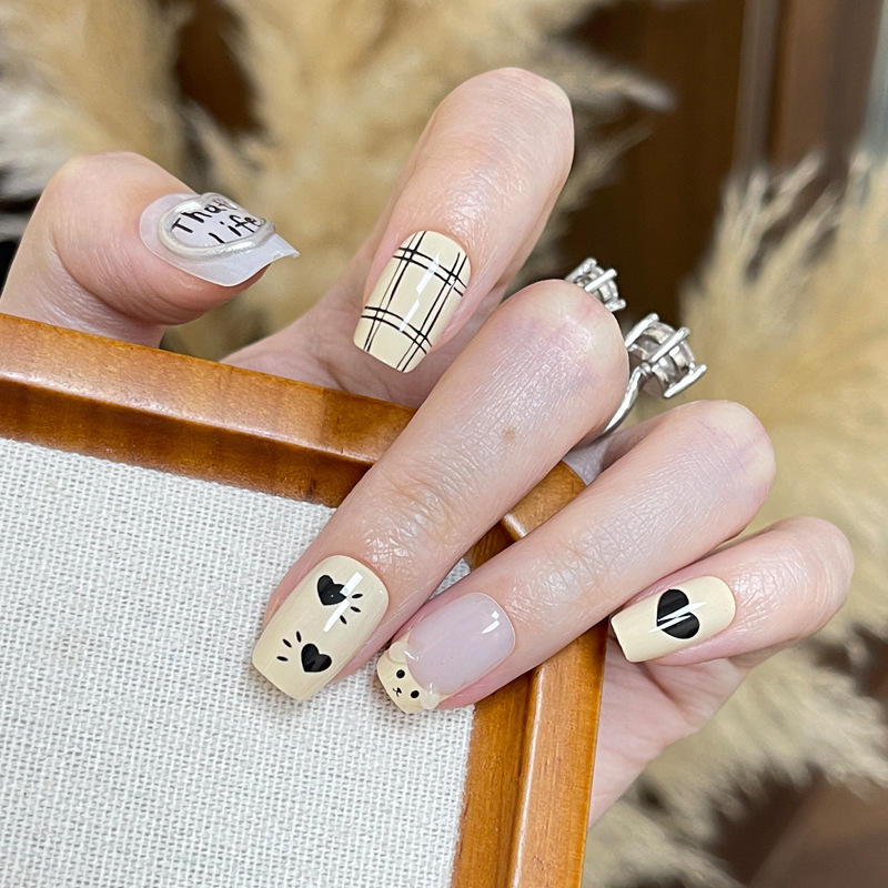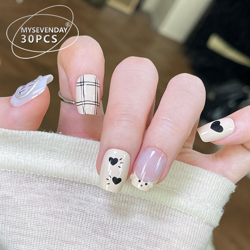 Ute Style Portable Ongles Ours Plaid Crème Jaune Base Couleur Coeur Conception Girly Autocollants Étudiant Nail Patches