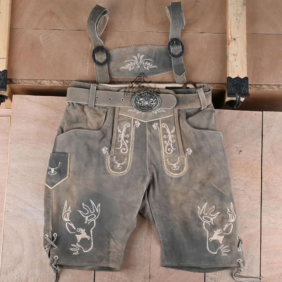 vintage german lederhosen shorts men goat leather with embroidery bavarian style oem for oktoberfest wholesale