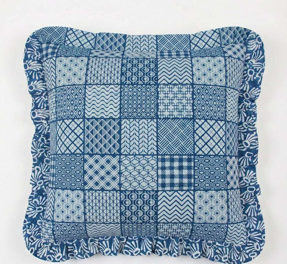 Vintage Indian Hand Block Printed Cotton Frill Square Cushion Covers Bohemian Style Home & Hotel Use 16x16 18x18 20x20
