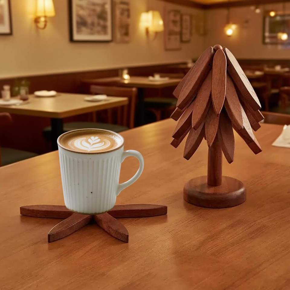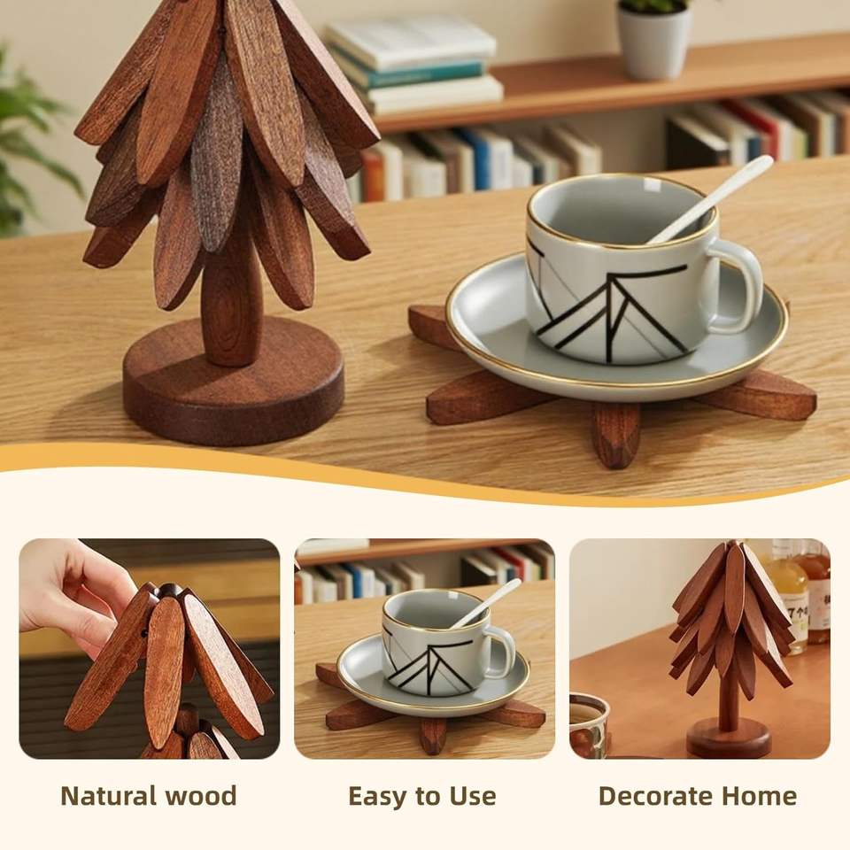 Sous-plats de luxe faits à la main en bois de noyer, ensemble de dessous de plat pour plats chauds, sets de table pliables de 60 cm de diamètre, dessous de plat, décoration de cuisine pour théière