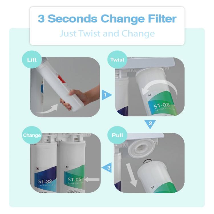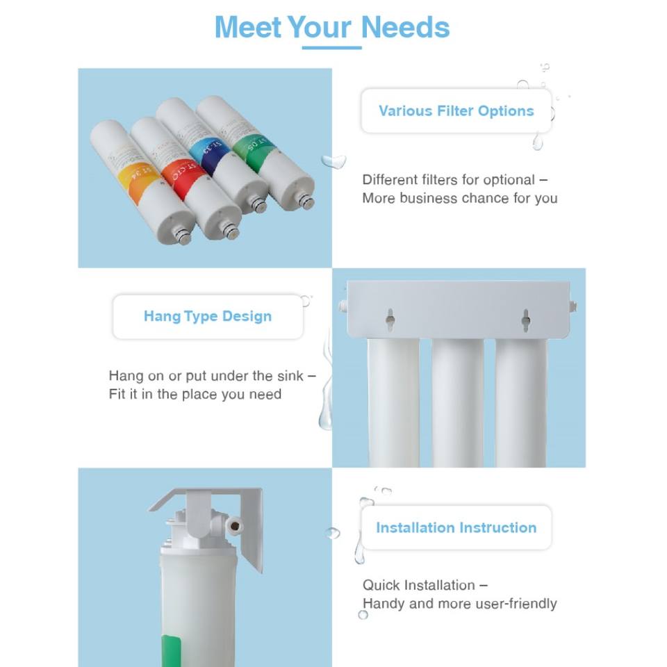 Purificateur d'eau manuel sous évier Lan Shan EQ3 avec filtration en 3 étapes Matériau plastique Installation facile et garantie 1 an
